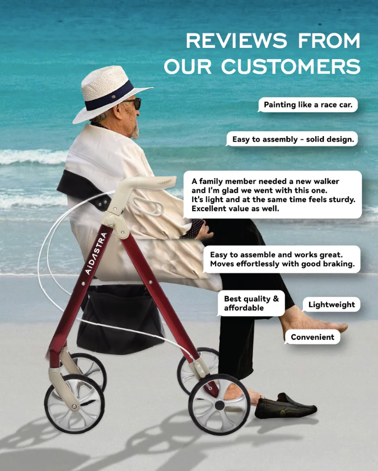 As a physician, I recommend this rollator for patients needing safe, reliable mobility. Its lightweight frame, large wheels, and ergonomic brakes make it easy to handle, promote independence, and help reduce fall risk.