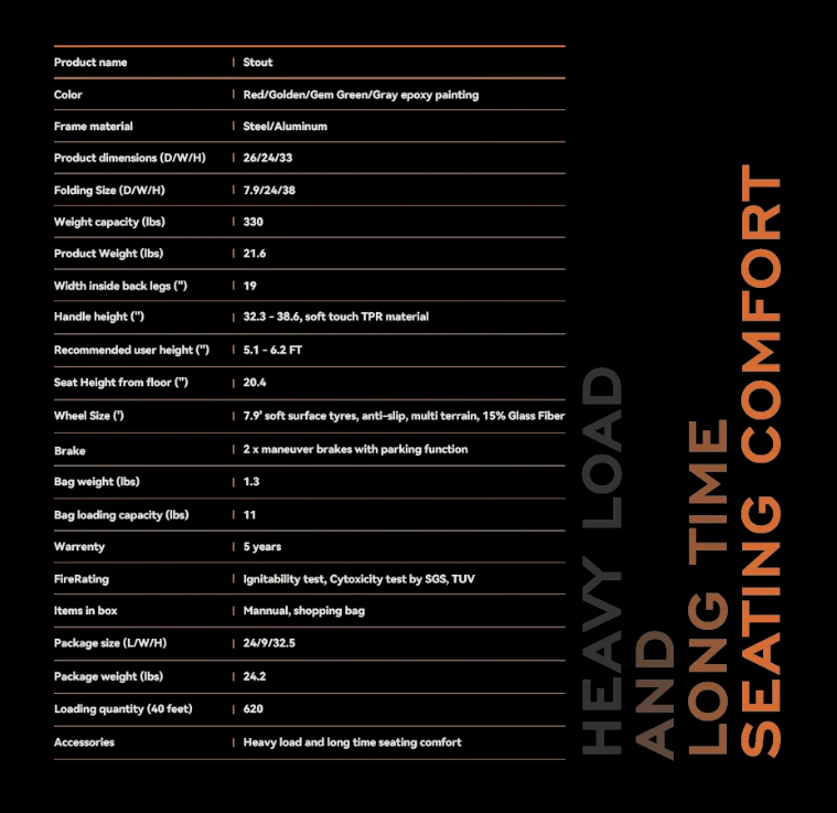 Strong and easy to assemble. Great support for a short walk or long walk that turns into a ride. Easy to fold on a visit to the Doctors office.