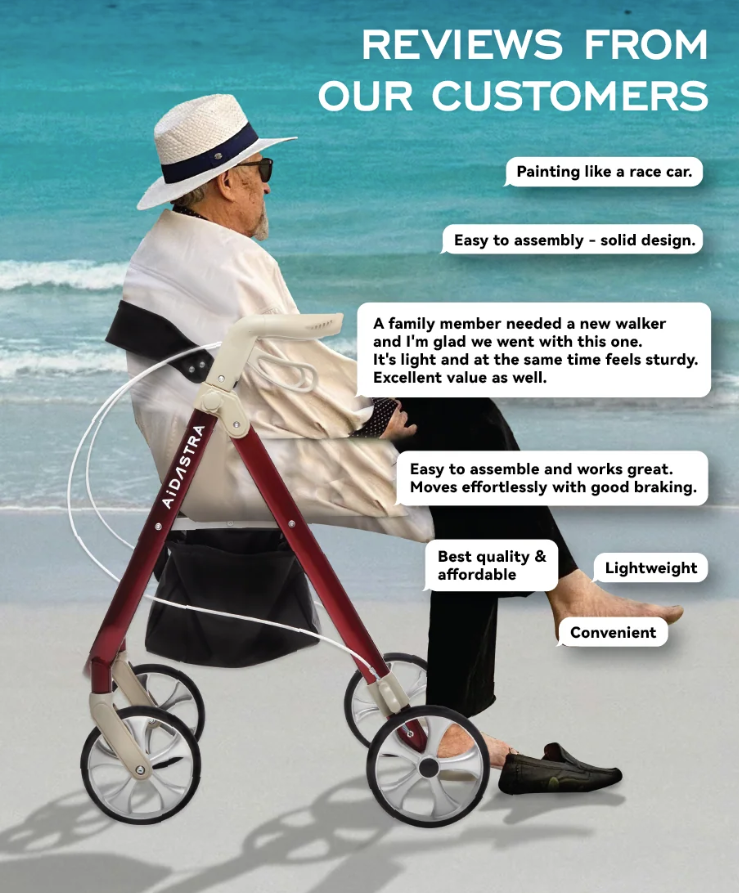 I bought this walker for my mom. It was easy to assemble, smooth, can handle tight turns and spaces, and most of all my 83 yo mom was able to use it right away. It’s well made, color is nice, lightweight and can be stored in a small bag. Great product overall!
